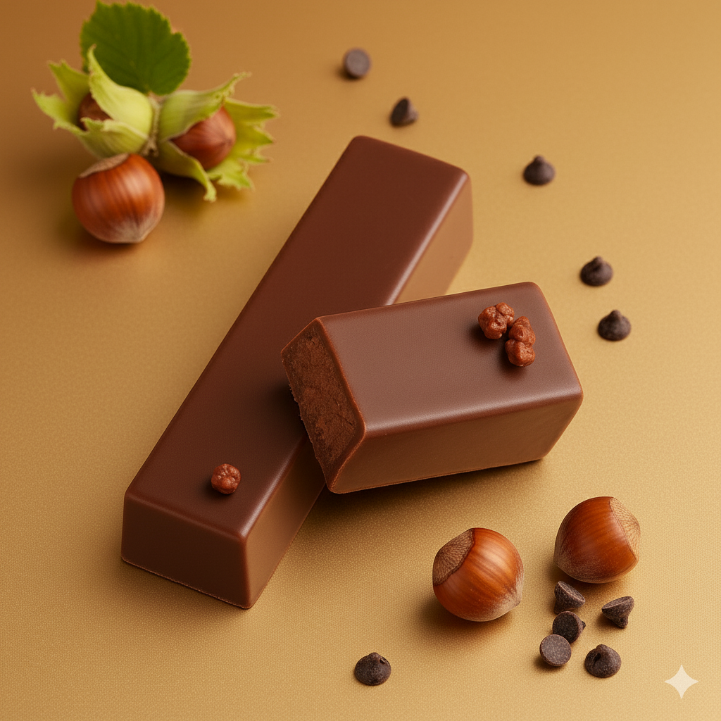 Plongez dans l’intensité de nos barres fondantes au gianduja maison : un cœur onctueux de noisettes torréfiées mêlé à un chocolat noir profond. Une gourmandise artisanale, sans conservateurs, où seules les matières premières révèlent la pureté du goût.